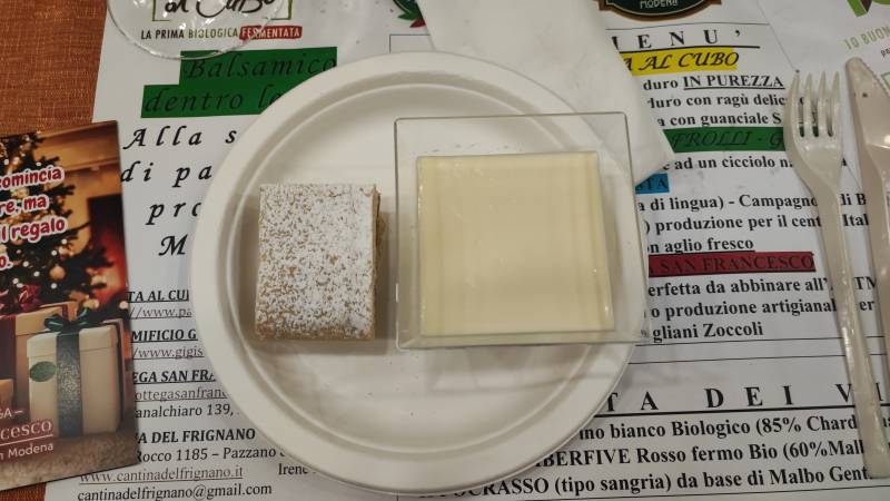 - Panna cotta e spongata (anticipazione del Natale) “Bottega SanFrancesco” storica recente riapertura di Marco Olivi Mocenigo